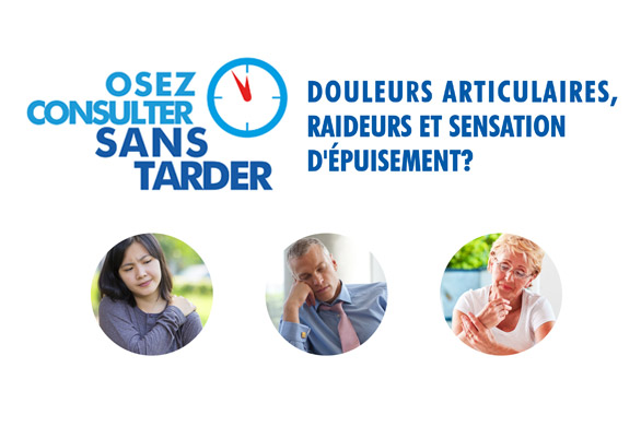 La première étape dans la gestion d'une maladie est de connaître les symptômes. Les douleurs articulaires et musculaires persistantes, la fatigue extrême, les raideurs articulaires et la dépression sont autant de symptômes possibles des Maladies Rhumatismales et Musculosquelettiques.